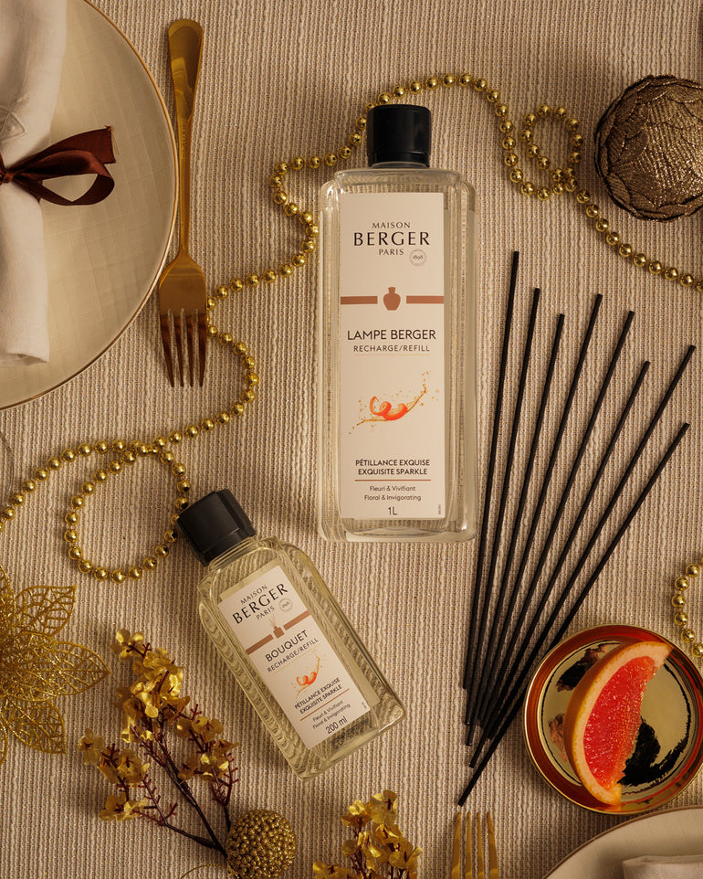 Fill your home with an exhilarating scent of celebration! The Exquisite Sparkle home fragrance creates an effervescent atmosphere, like bubbles floating to the top of a champagne flute.