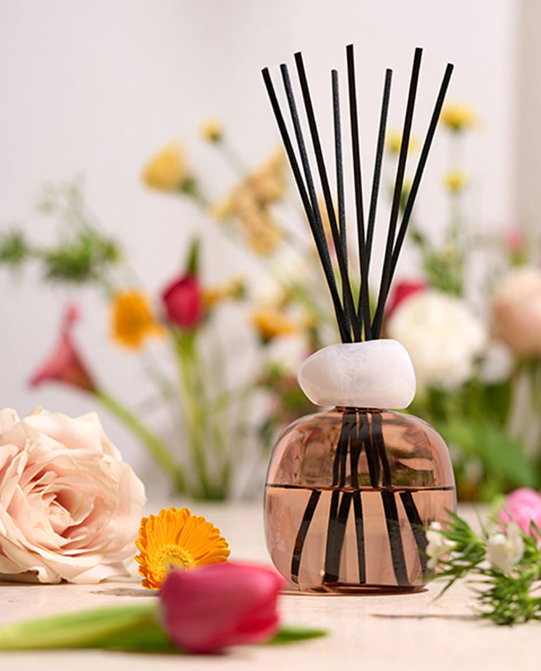 The perfect accent for the modern mademoiselle! The unique combination of fascinating design, alluring colors and textures, and a modern scent make this reed diffuser irresistible.